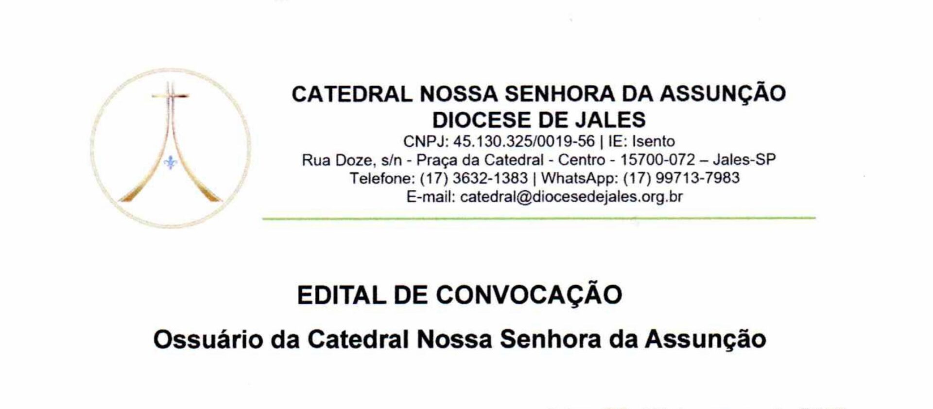 COMUNICADO SOBRE O OSSUÁRIO DA CATEDRAL – Edital Convocação Cessionários Ossuário 1980