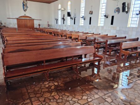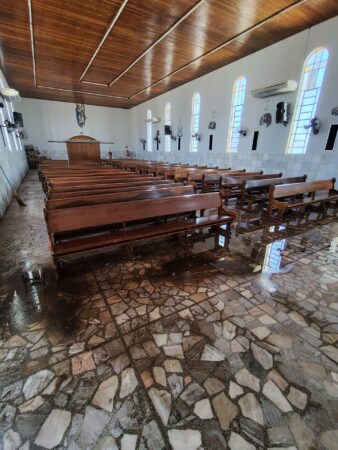 Pe. Max também relatou que a Matriz teve todo o telhado quebrado e que o interior da igreja ficou todo sujo.
