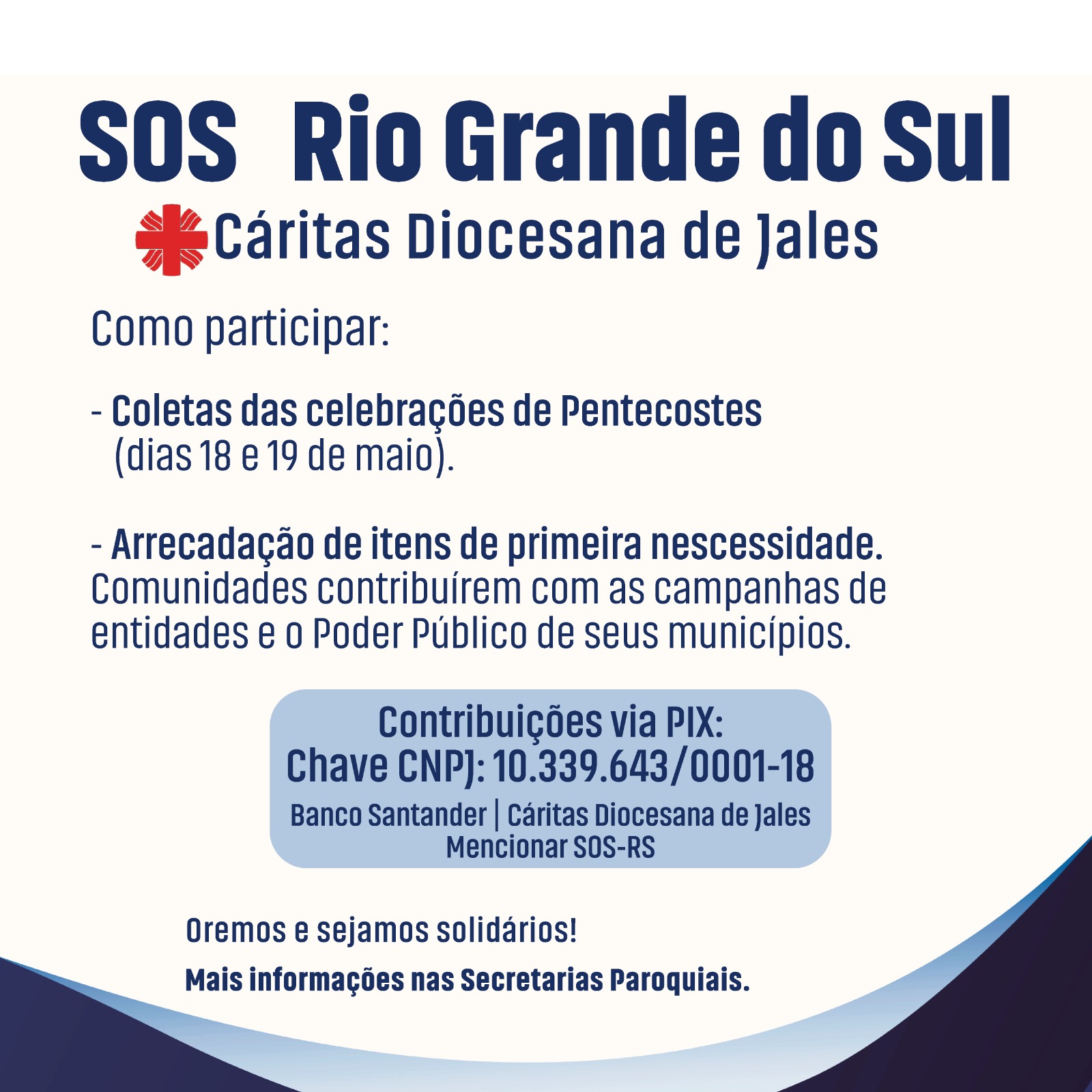 Cáritas Diocesana de Jales anuncia campanha SOS Rio Grande do Sul