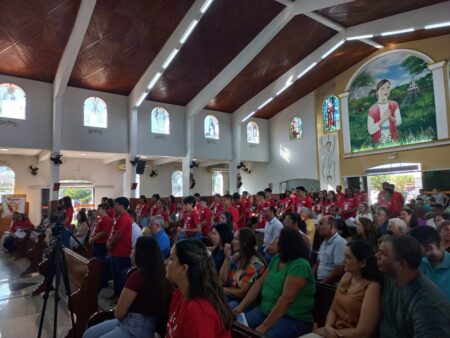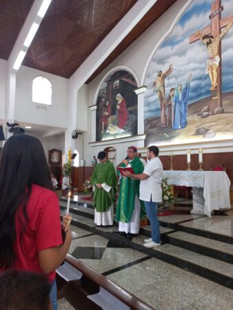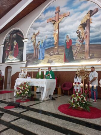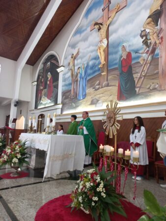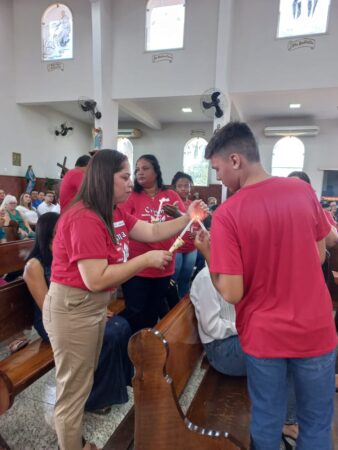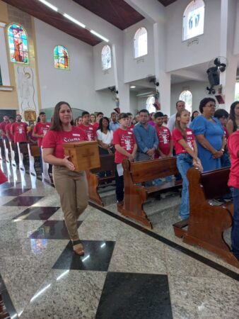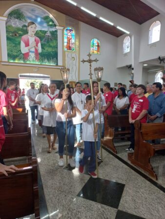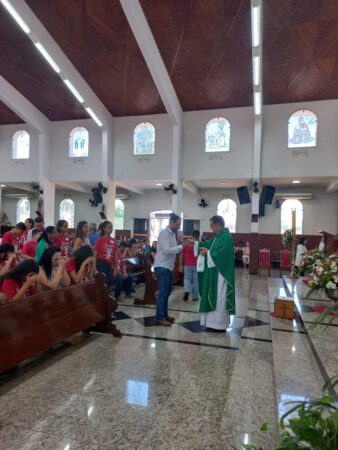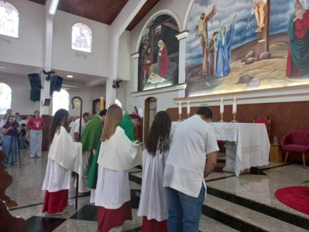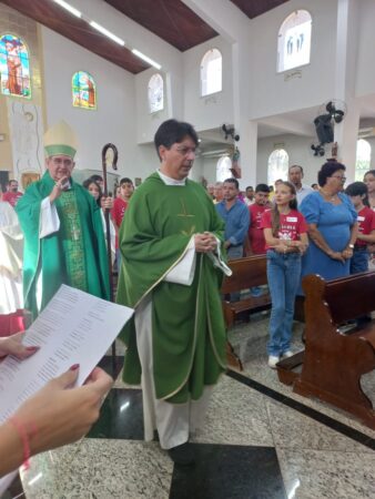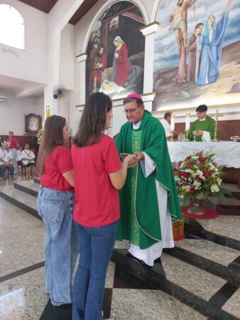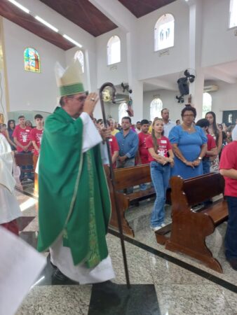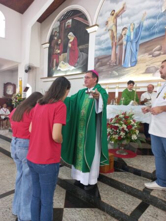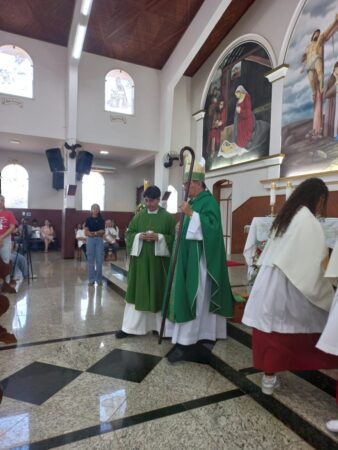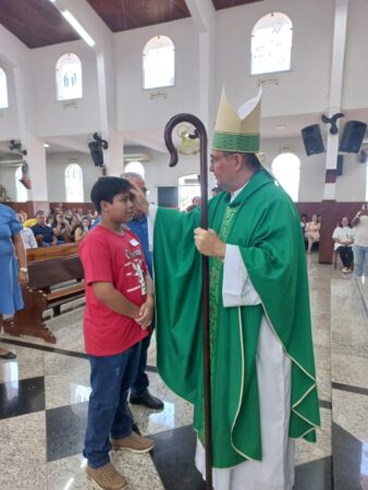 No último dia 16 de fevereiro, às 8h, na Paróquia São Francisco de Assis, em Santa Albertina/SP, dezenas de catequizandos adolescentes, jovens e adultos da cidade e, também, de Paranapuã, receberam o Sacramento do Crisma pelas mãos do bispo diocesano de Jales, Dom José Reginaldo Andrietta. A missa foi concelebrada pelo Pe. Octávio del Luján Moscoso, fdcc.