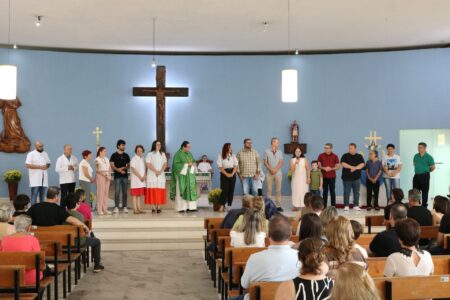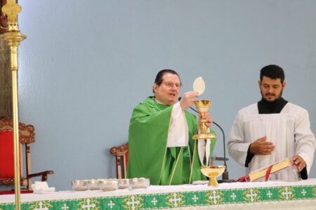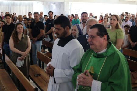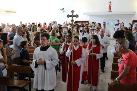 A Santa Missa foi presidida pelo Pe. Telmo José Amaral de Figueiredo, assessor da Comissão Bíblica Diocesana, tendo a presença dos membros da Comissão juntamente com toda a comunidade.