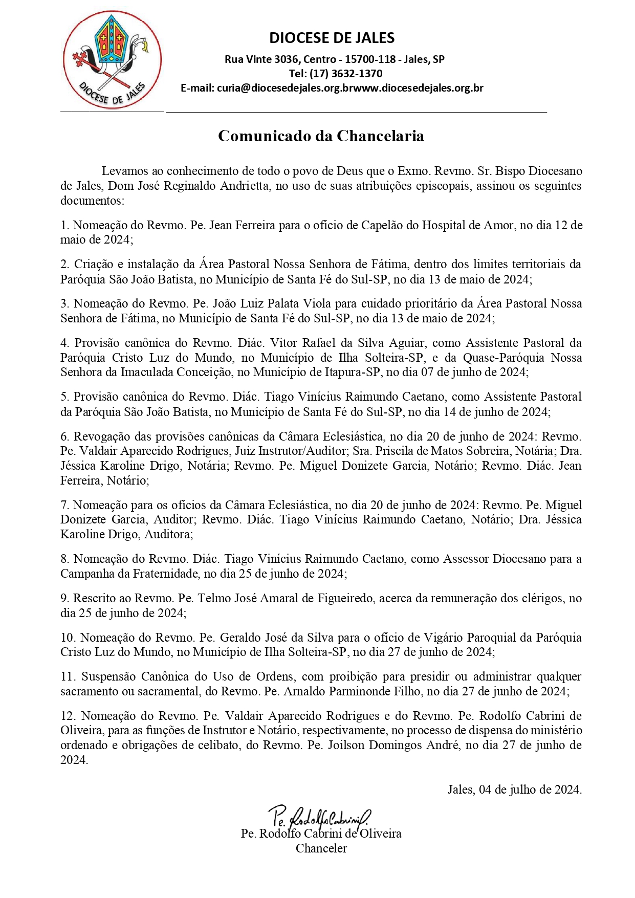 Comunicado da Chancelaria – Julho de 2024