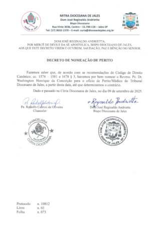 DECRETO DE NOMEAÇÃO DE ADVOGADOS CIVIS PARA A JUSTIÇA ECLESIÁSTICA