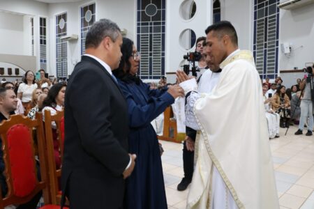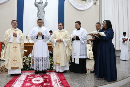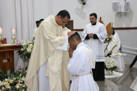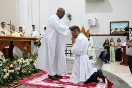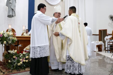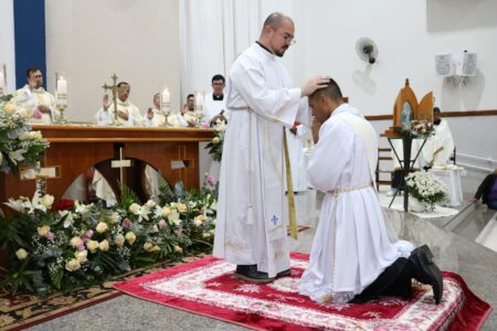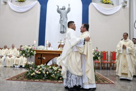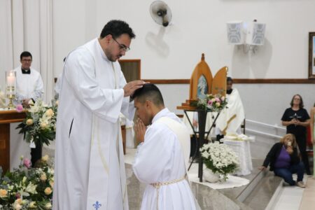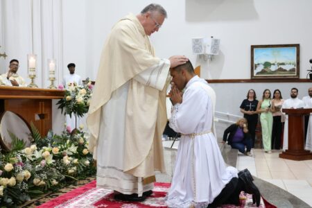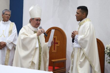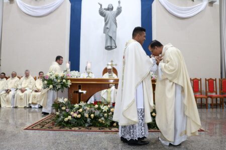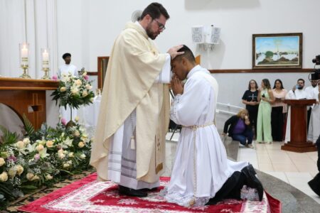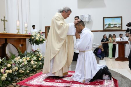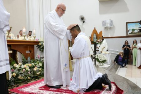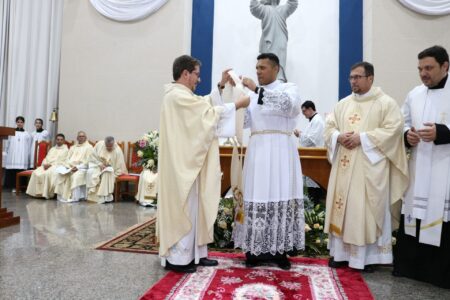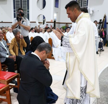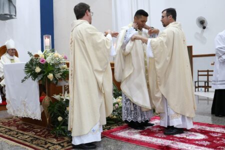 “Não vos canseis de fazer o bem”. Com esse lema, o diácono Vitor Rafael da Silva Aguiar foi ordenado presbítero no dia 5 de julho, na Paróquia São João Batista, em Ouroeste/SP.