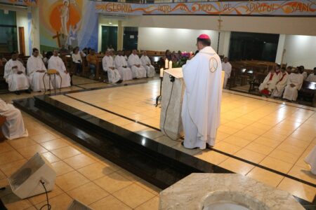 A Diocese de Jales celebrou na noite de ontem, 16 de dezembro, o a Santa Missa de encerramento do Ano Jubilar 2025 “Peregrinos de Esperança”, presidida pelo Bispo Diocesano, Dom Reginaldo Andrietta, e concelebrada pelos presbíteros da diocese.