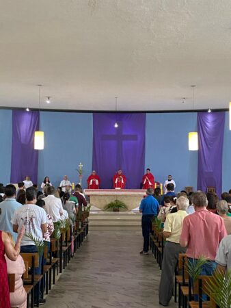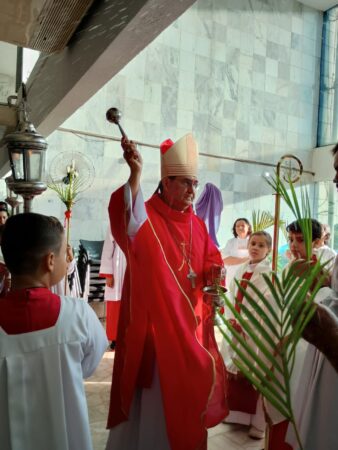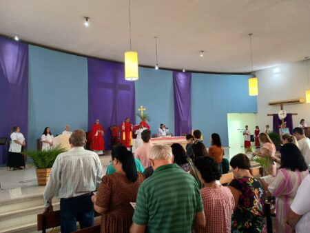 Ontem (13), a Igreja celebrou o Domingo de Ramos da Paixão do Senhor, dando início a Semana Santa de 2025. Dom Reginaldo Andrietta, bispo diocesano de Jales, celebrou a missa na Catedral Nossa Senhora da Assunção, tendo concelebração dos padres Valter Lucato Campano Junior (pároco) e Eduardo Alves de Lima (vigário paroquial).