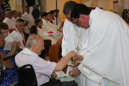 Celebrando a Festa da Sagrada Família de Jesus, Maria e José, Dom Reginaldo lembrou, durante homilia, que nesta mesma festa da Igreja ele foi ordenado bispo há 10 anos, na Basílica Santuário Santo Antônio de Pádua, em Americana-SP. “É graça de Deus ter sido escolhido por Ele e, claro, um agradecimento especial ao Papa Francisco, e hoje reverenciando o Papa Leão XIV, também exerço essa missão que é compartilhada com o presbitério da diocese e extensiva aos cristãos leigos e leigas, pois assumimos a missão apostólica em conjunto. Eu não sou digno, mas Cristo quis contar comigo. Hoje, celebrando esses 10 anos, elevo a Deus uma prece de gratidão e, também, peço súplicas por mim, para que eu seja fiel nessa missão”, disse Dom Reginaldo.