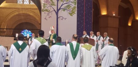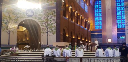O Encontro Paulistão dos Presbíteros teve início com a celebração da Santa Missa no Santuário Nacional de Aparecida, presidida por Dom João Inácio Müller, Arcebispo de Campinas e Bispo Referencial dos Presbíteros no Regional Sul-1 da CNBB. A Eucaristia contou com a concelebração de Dom Moacir Silva, Arcebispo Metropolitano de Ribeirão Preto e Presidente do Regional Sul-1.