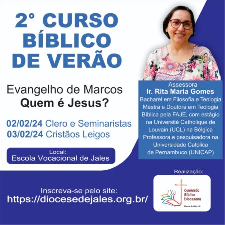 Vem aí o 2º CURSO BÍBLICO DE VERÃO, cujo tema será: “Evangelho de Marcos: Quem é Jesus?”