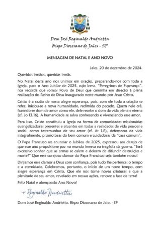 MENSAGEM DE NATAL E ANO NOVO – DOM REGINALDO ANDRIETTA