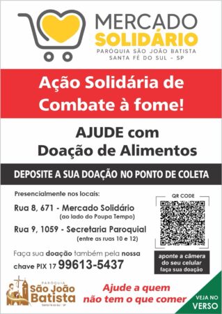 As doações de alimentos não perecíveis podem ser feitas no próprio Mercado ou na Secretaria Paroquial.