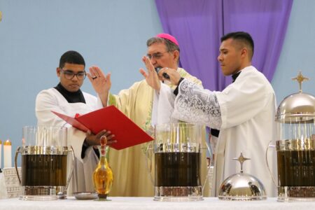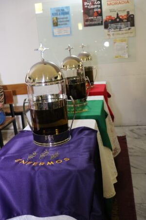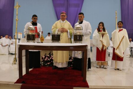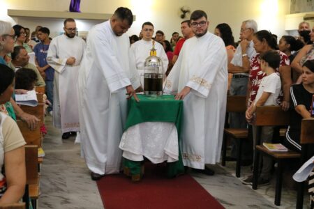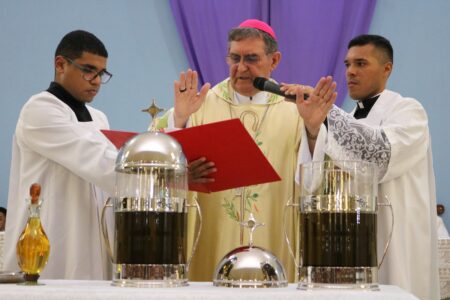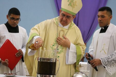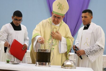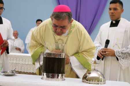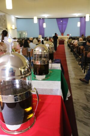 Dom Reginaldo reforçou que durante a celebração são consagrados três óleos: o óleo dos catecúmenos, dos enfermos e do crisma. “O óleo dos catecúmenos significa a libertação do mal e a força de Deus concedida aos que se preparam para nascer pela água e pelo espírito. O óleo dos enfermos significa a força do espírito de Deus para quem sofre provações, enfrenta a dor e se defronta com a eminência da morte. O óleo do crisma, uma mistura de azeite de oliva e bálsamo, que possui um perfume especial, significando que o cristão deve exalar o bom perfume de Cristo, que é o Espírito Santo. Ele é utilizado no batismo, na crisma, nas ordenações e na dedicação de igrejas. Pela unção que todos recebemos, configuramo-nos a Cristo, constituindo-nos nele um povo santo e santificador.