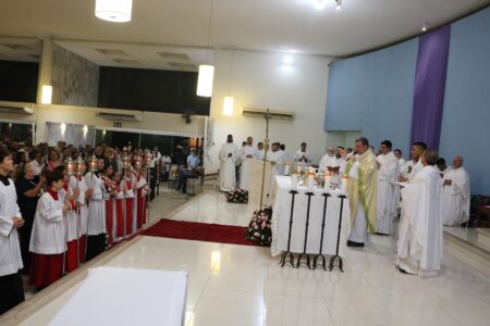 Na noite de terça-feira da Semana Santa, 31 de março, a Catedral Nossa Senhora da Assunção acolheu a celebração da Missa dos Santos Óleos. A eucaristia foi presidida por Dom Reginaldo Andrietta, Bispo Diocesano de Jales, e concelebrada pelos presbíteros da Diocese.