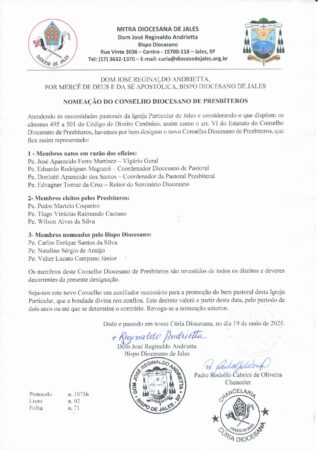 NOMEAÇÃO – CONSELHO DIOCESANO DE PRESBÍTEROS