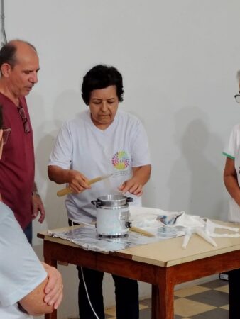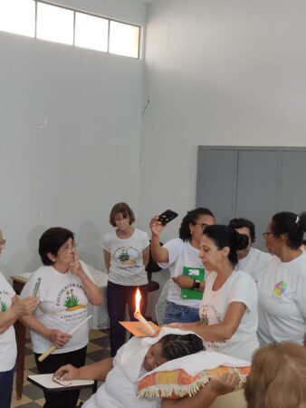 Além disso, foi realizado um momento de troca de experiências, bem como a apresentação de ervas medicinais e a confecção do ‘cone hindu’, que é um artefato feito de tecido embebido em cera de abelha, parafina ou outros materiais. Sua utilização envolve a inserção da extremidade mais fina no canal auditivo e a queima da outra ponta. De acordo com a pastoral, o calor gerado amolece a cera do ouvido, facilitando sua remoção.