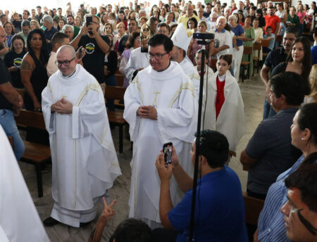 “Queremos louvar a Deus pela disponibilidade, pela coragem e o testemunho de fé que o padre Eduardo Lima está nos dando. Ele representa todos vocês nesta missão. Depois de ter se dedicado nestes últimos 15 anos à Diocese de Jales, agora, ele escutando a voz de Deus, se deixa conduzir a esse apelo pela evangelização na Amazônia”, disse Dom José durante sua homilia.