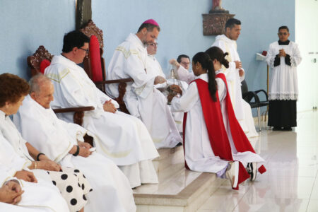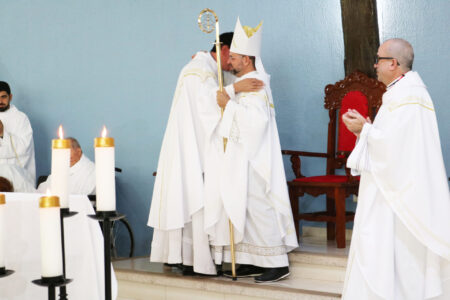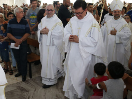 Ao final da celebração, Dom José, juntamente com Dom Demétrio, realizaram a imposição das mãos, como sinal de envio para a nova missão que ele assumiu.