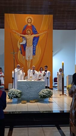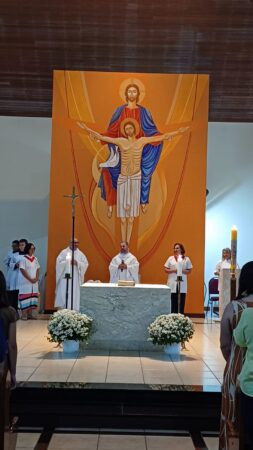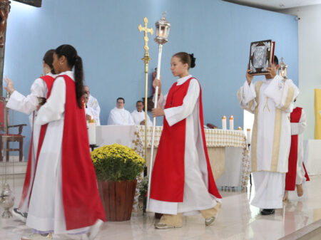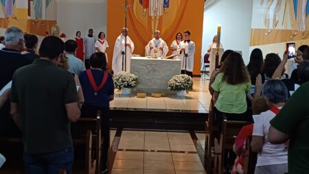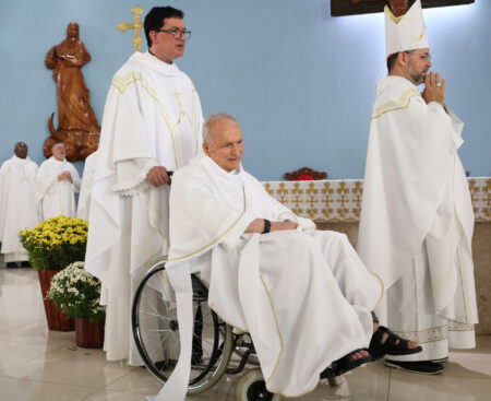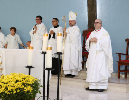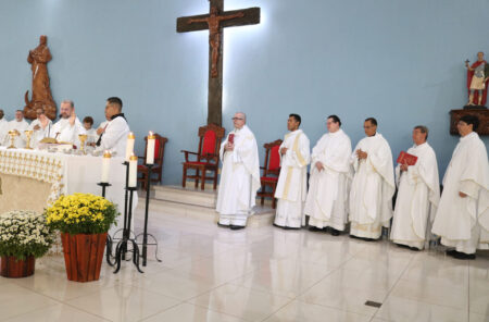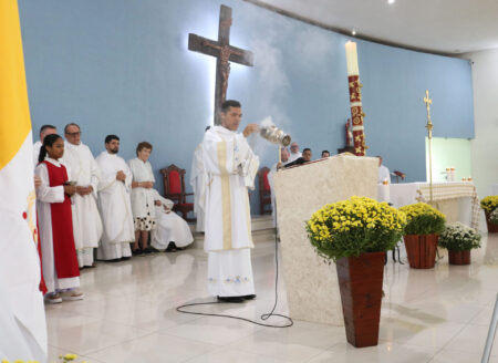 A celebração foi presidida por Dom José Albuquerque de Araújo, bispo diocesano de Parintins/AM, reunindo famílias e amigos do Pe. Eduardo Lima de toda a Diocese de Jales e de outras localidades do Brasil.