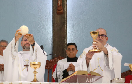 Padre Eduardo Lima, durante sua mensagem final, ressaltou que “é um momento de muita alegria e, ao mesmo tempo, de muita responsabilidade. A mudança para a Amazônia não é apenas uma mudança geográfica, mas uma mudança de olhar, de escuta e de vida. Agradeço de coração a Dom Reginaldo, nosso bispo, por seu apoio constante, por sua confiança e seu incentivo. Parto com alegria, com fé e com a certeza de que Deus já me espera nas comunidades da Diocese de Parintins. Rezem por mim e permaneçam comigo na missão por meio da oração, do carinho e da comunhão fraterna. Um até logo, voltarei um dia. Quem sabe daqui três anos ou talvez mais. Quem sabe eu volte.”