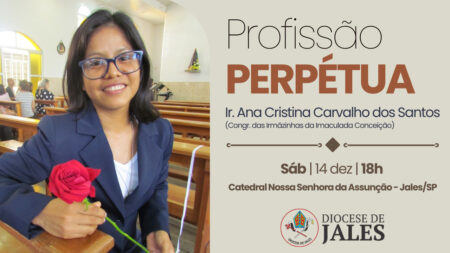 Acompanhe a transmissão ao vivo da Celebração Eucarística dos Votos Definitivos de Vida Religiosa Consagrada da Ir. Ana Cristina, a partir das 17h45, diretamente da Catedral Nossa Senhora da Assunção, de Jales/SP, através do link: