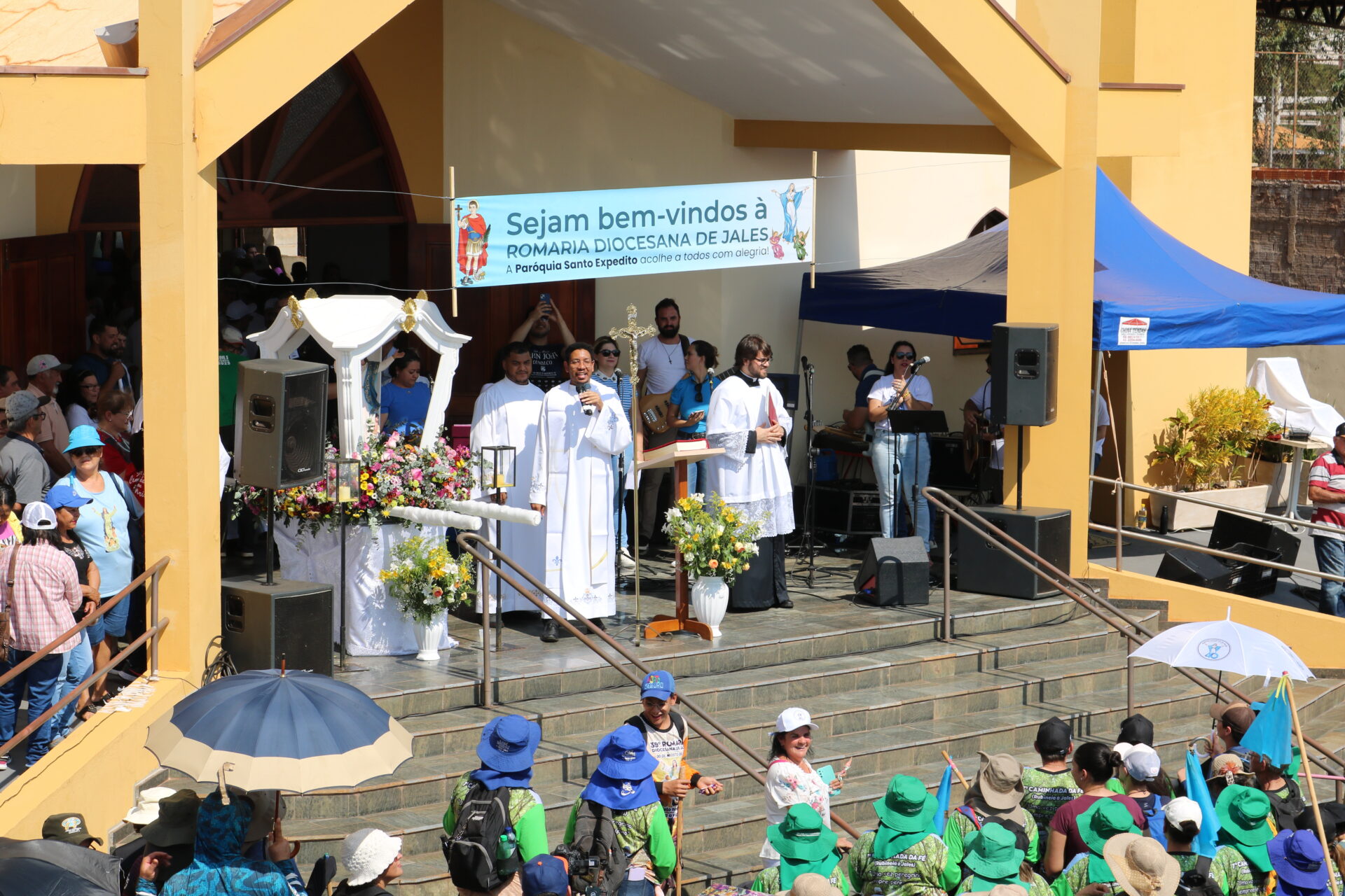 Na Praça da Catedral os romeiros foram recepcionados com muita alegria pelo Coral Diocesano. As diversas equipes da Paróquia da Catedral Nossa Senhora da Assunção e de outros grupos se mobilizaram nos preparativos da estrutura que recebeu a celebração. A Catedral permaneceu lotada a tarde toda e os romeiros também se acomodaram nas duas praças centrais de Jales.