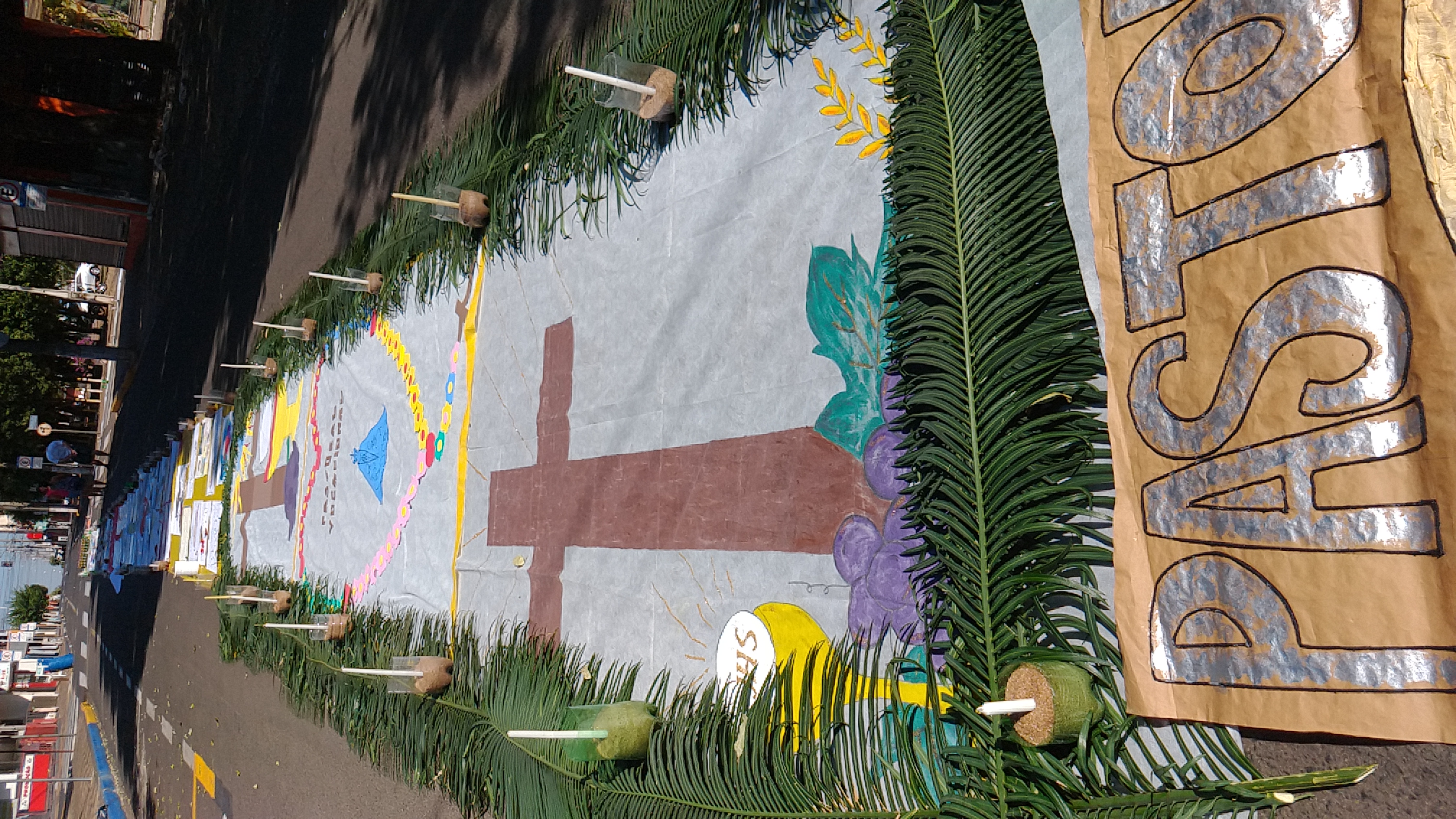 Desenhos marcaram o trajeto da procissão do corpo de sangue do Senhor conduzida  pelo bispo diocesano