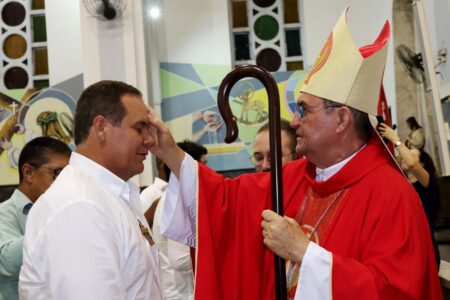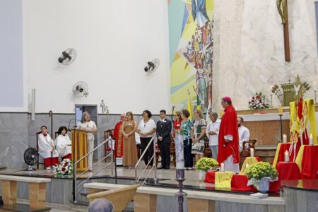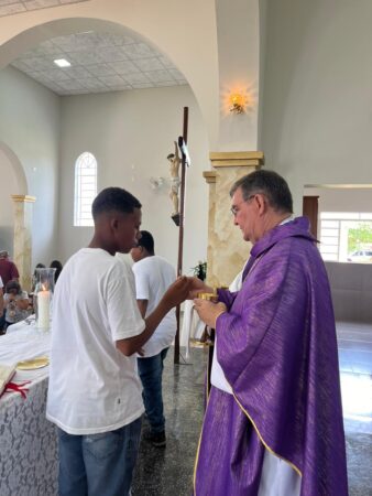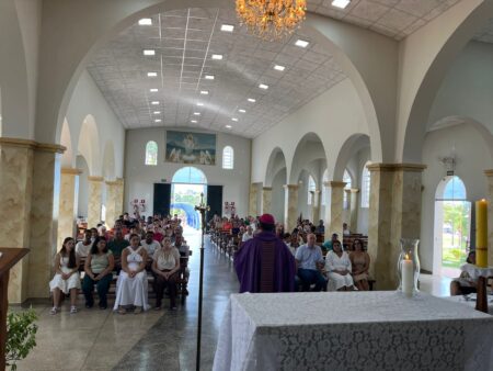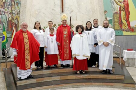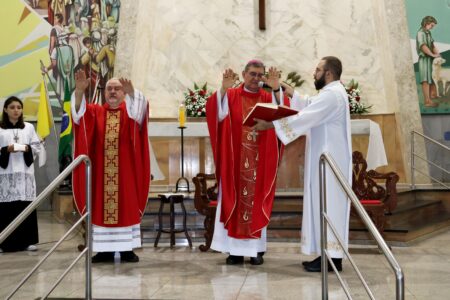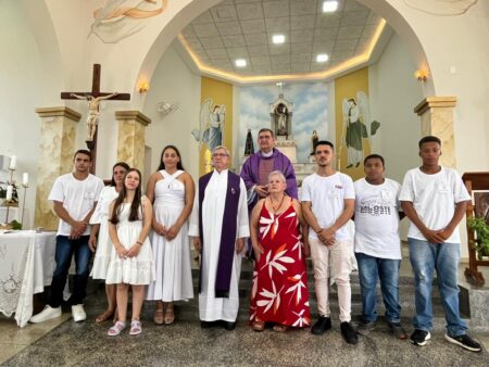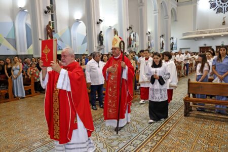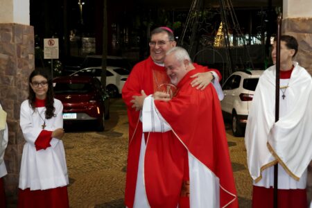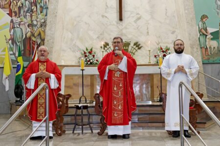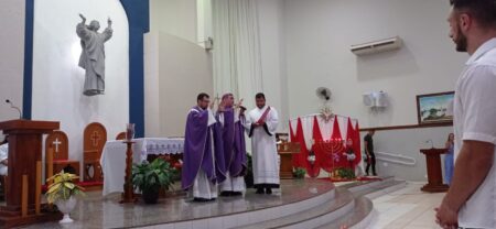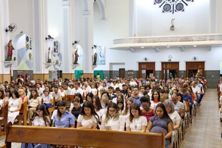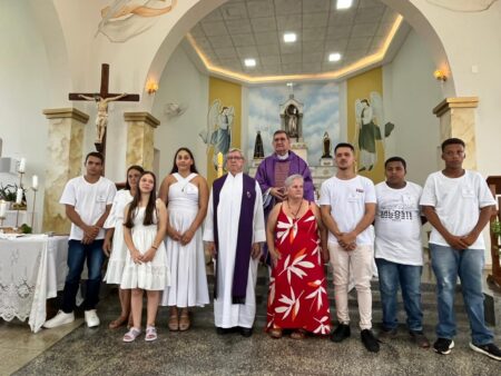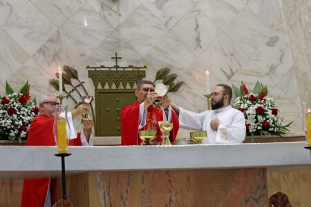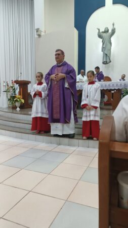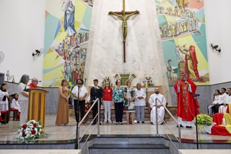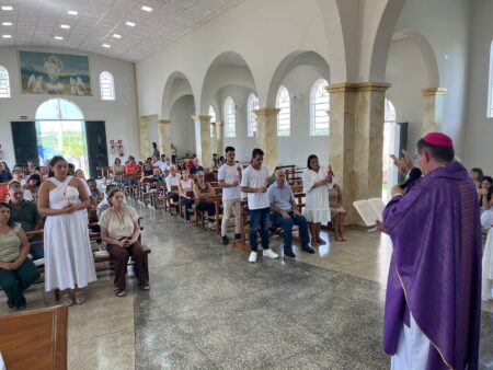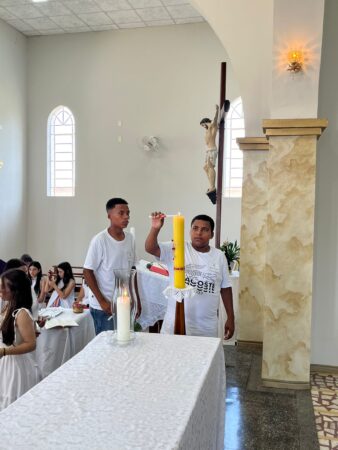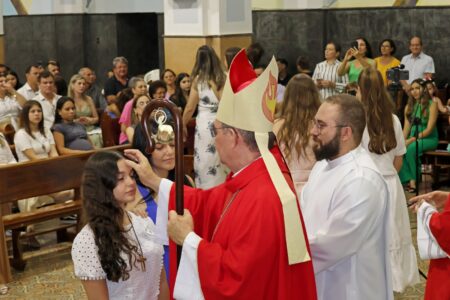 As missas das crismas foram concelebradas pelos padres Natalino Sérgio de Araújo (Fernandópolis), Deoclides Messias Lolis (Santa Clara d’Oeste) e Claudemir Ortunho (Ouroeste). O diácono Vitor Rafael também participou da celebração na paróquia de Ouroeste.
